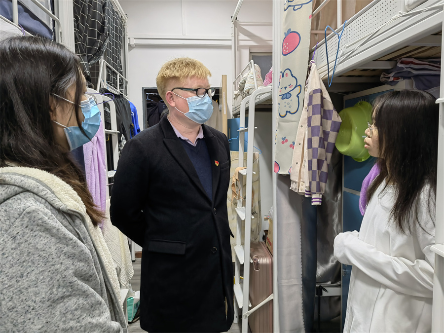 在辅导员的陪同下,关树基来到员工宿舍进行走访,向员工们表达了诚挚的问候,祝愿大家冬至快乐。在走访过程中,公司领导和老师对在校的员工致以诚挚的关怀以及问候。他们详细地了解同学们考试前复习的情况,并询问同学们的生活所需,及时解决员工的困难。提醒员工提防网络诈骗和各种常规骗术。同时,关心新生们的身体健康情况,叮嘱员工要注意宿舍卫生,做好疫情防控、预防冬季传染病、多开窗通风、及时清理宿舍垃圾,并叮嘱员工要按时休息,科学作息。