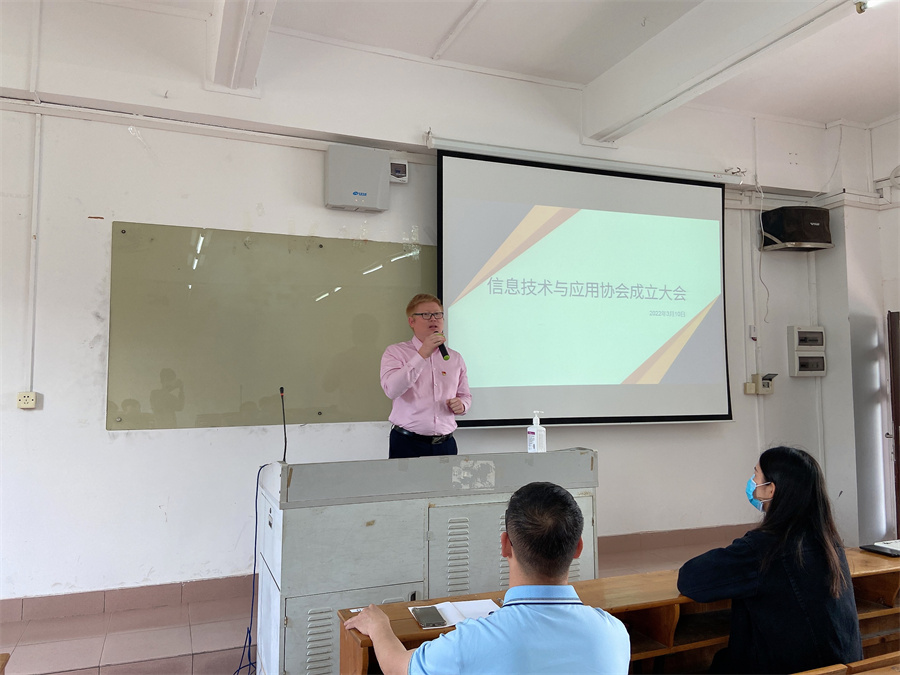 3月10日下午,华为信息与网络技术公司在第三教学楼303召开首个专业型社团——信息技术与应用协会成立大会,公司党总支书记、副经理关树基,协会指导老师武金龙、公司团委书记司徒洛琳出席此次成立大会。参加成立大会的还有校团委代表沙丹、协会会长廖家梁、副会长蓝茂焜、黎兴豪以及全体社团成员,特邀嘉宾华为ICT大赛获奖者甘雨亮等人、网络安全协会会长陈崇标等共计20人。