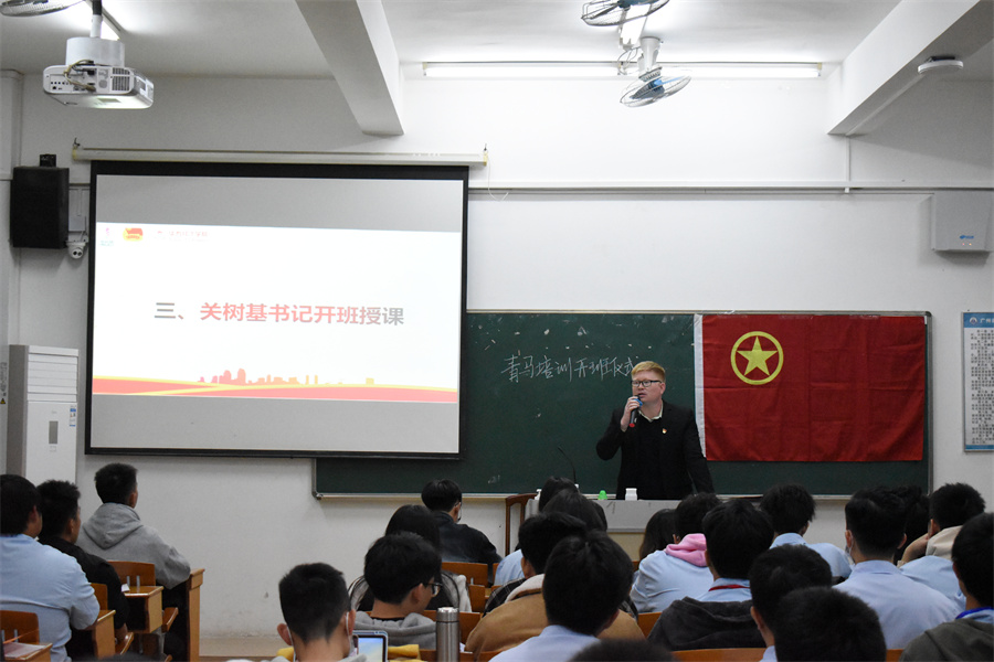 此次培训,关树基以“坚定理想信念,践行团学人的使命担当——如何锻炼成一名有责任担当的团学干部”为授课主题,他以正确认识团学组织、团学干部的初心和使命、团学干部的团队精神培养、团学干部要在工作中敢于担当、团学干部在哪些方面担当和团学干部疫情常态下如何担当作为授课内容,让团学干部及基层班团干部清楚知道加入团学组织的目的和当前员工干部存在的问题,引导团学干部树立正确的服务意识。他指出,公司开班“青马班”旨在打造一支高度团结、合作高效的队伍。他在课堂上提出,团学组织举办活动一定要站立在熟知校情院情班情的基础上开展,活动要与公司专业结合,与员工兴趣爱好结合,深入调研,结合实际,办同学们喜闻乐见的活动,。他还强调员工干部是公司员工中的骨干,是公司联系员工的桥梁和纽带;是公司思想政治教育队伍中的重要组成部分;是教师的得力助手;是公司良好学风的带头人、校园文化建设的具体组织者、参与者和实施者。指出,团学干部是一种身份,是一个符号,是一座桥梁,是一栋堡垒,是一面旗帜,更是一个标杆!
