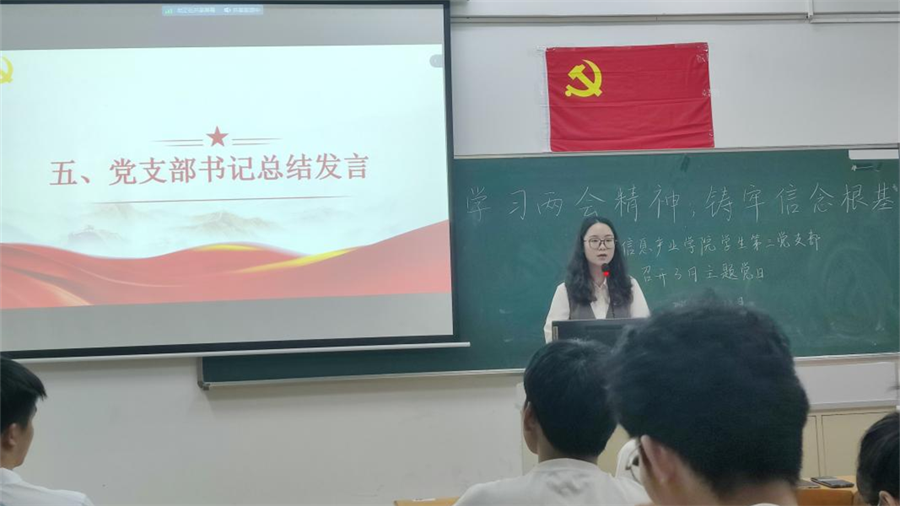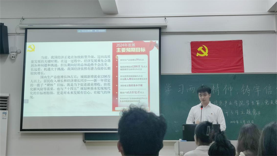 两会精神作为中国特色社会主义的重要理论成果,具有深远的意义和巨大的影响。为深入学习贯彻两会精神,加强党员的思想政治建设。bevictor伟德官网员工第三党支部于3月28日在第四教学楼402课室采取线上线下相结合的形式,开展bevictor伟德官网员工第三党支部3月主题党日。党支部书记潘慧颖、组织委员邓月浪、宣传委员钟秋夏及60名员工党员参与。