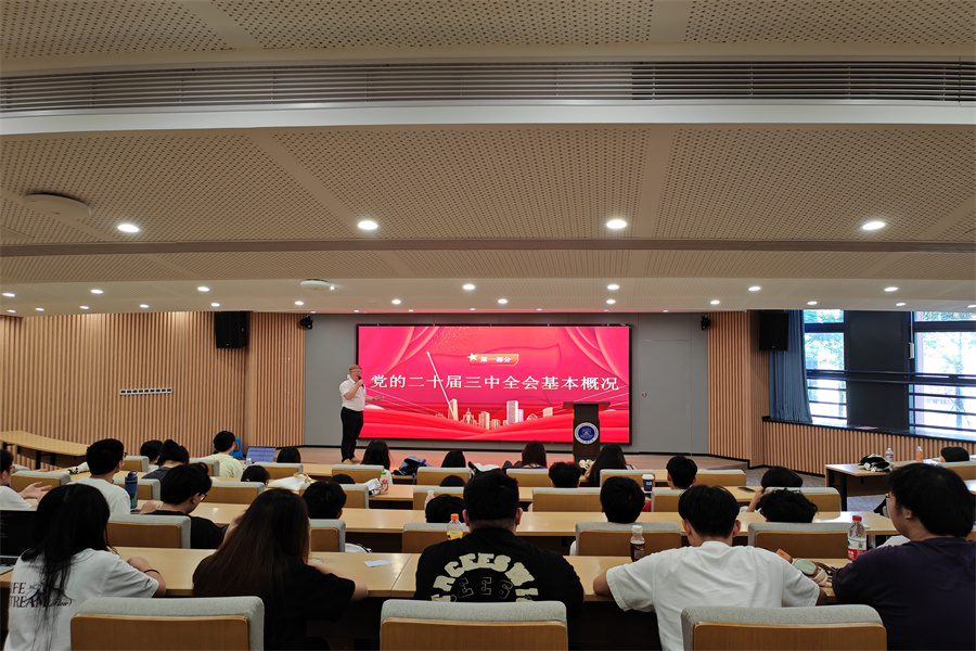 关树基围绕党的二十届三中全会召开背景、基本框架和会议要义等方面作党的二十届三中全会精神专题学习报告。他重点领学了《中国共产党第二十届中央委员会第三次全体会议公报》的主要内容,通过阐述进一步全面深化改革、推进中国式现代化的重大意义和总体要求,带领同学们深刻学习领会全面深化改革的一系列新思想、新观点、新论断,准确把握其科学内涵和实践要求。此外,他通过引用经济特区发展历程,为大家分享改革开放政策的实施给国家经济发展带来的巨大变化和深刻影响,并解读全会精神对社会、法治、国家安全等方面的部署,使同学们从中了解到国家发展的宏观视角与微观细节,学习到了如何在复杂多变的社会变革和全面深化改革,推进中国式现代化机遇中把握时代脉搏,以及如何将个人理想融入国家发展的洪流之中。