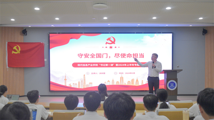 为深化员工思想政治教育,切实做好党员发展对象的培养教育工作。公司党总支于5月7日晚在第八教学楼101报告厅开展“书记第一课”暨2024年上半年专题党课。本次党课以“守安全国门,尽使命担当”为题,由公司党总支书记、副经理关树基主讲,旨在引导员工树立正确的世界观、人生观和价值观,进一步锤炼党性修养,坚定理想信念。