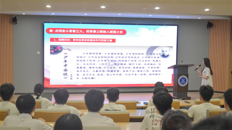 班主任助理李珏仪带领全体学员诵读《少年青年说》,与梁启超先生进行时空对话,展现出当代青年蓬勃的朝气和昂扬的斗志。