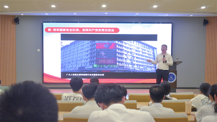 关树基激励学员们作为新时代的知识青年,要严于律己,在学习、生活、工作等各方面发挥好榜样示范作用。他围绕“从习近平总书记对青年寄语中寻找人生目标”“筑牢国家安全红线,发挥共产党员责任担当”“点燃奋斗青春之火,把青春之歌融入报国之志”“坚强勇立时代潮头,担当国家和民族复兴大任”四个方面进行了深入浅出的授课。