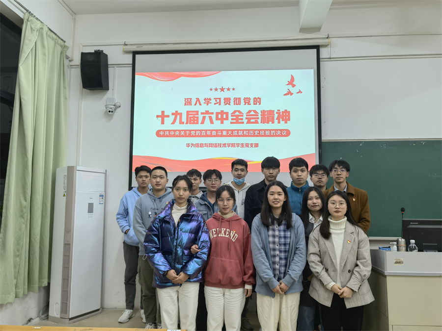为深入学习贯彻党的十九届六中全会精神,进一步增强“四个意识”、坚定“四个自信”、做到“两个维护”。1月5日晚,华为信息与网络技术公司员工党支部在第四教学楼105开展了专题党课学习。本次党课由为信息与网络技术公司员工党支部书记胡富铭主讲。公司员工党支部全体成员参加党课学习。