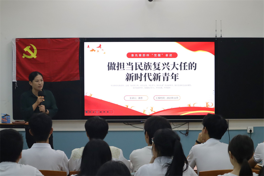唐思从“青年当择高处立”、“青年要珍惜韶华”、“青年须不负伟大时代”、“青年应主动‘觉醒’奋斗”四个方面,鼓励学员们立志高远,将个人理想融入家国情怀,珍惜时间,积极投身社会实践,将青春梦融入中国梦,与时代共同成长。