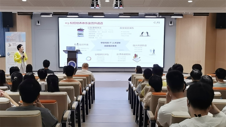 招聘宣讲会上,徐建向师生们展示了公司的发展历程与广泛业务范围,深入解读了企业的核心价值观与文化特色。作为银行、保险和金融领域的信息技术(IT)咨询与解决方案服务的提供商,公司凭借精湛的技术实力和卓越的服务品质,赢得了业界的高度认可与广泛赞誉。随后,褚兢婷详细介绍了公司的校招培养机制、职业发展路径以及具体的招聘流程,让员工们对华钦科技集团的岗位设置、薪酬待遇以及工作内容有了更加全面和深入的了解。同时,她还积极鼓励员工们勇敢追求金融IT行业的梦想,不断挖掘自身潜力,实现个人价值。