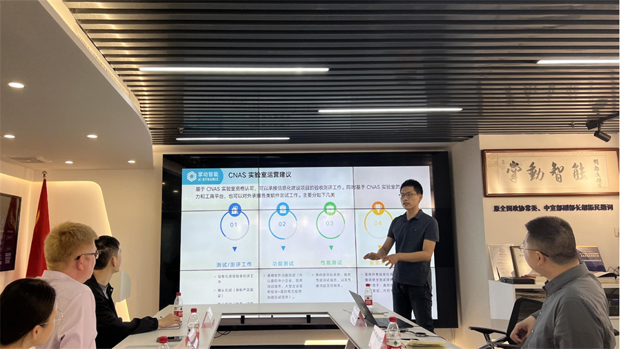 广州掌动智能科技有限公司总经理罗建军对公司领导一行的到访表示热烈欢迎。在部门经理楚金龙的带领下,公司领导一行参观了企业展厅及办公环境,他从企业目前的定位、业务范围、行业资质、企业特色和人才需求情况进行讲解。