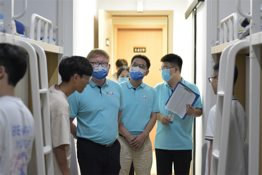 为切实做好疫情防控常态化下的员工管理工作,及时了解新生的思想动态和宿舍情况,9月18日晚,公司党总支书记、副经理关树基,副经理舒光美、李绍强在2022级本科新生辅导员林海燕、陈汝钧和范志航的陪同下,走访看望了2022级本科新生。公司领导班子对新生表达关切问候,深入了解新生的宿舍入住情况。