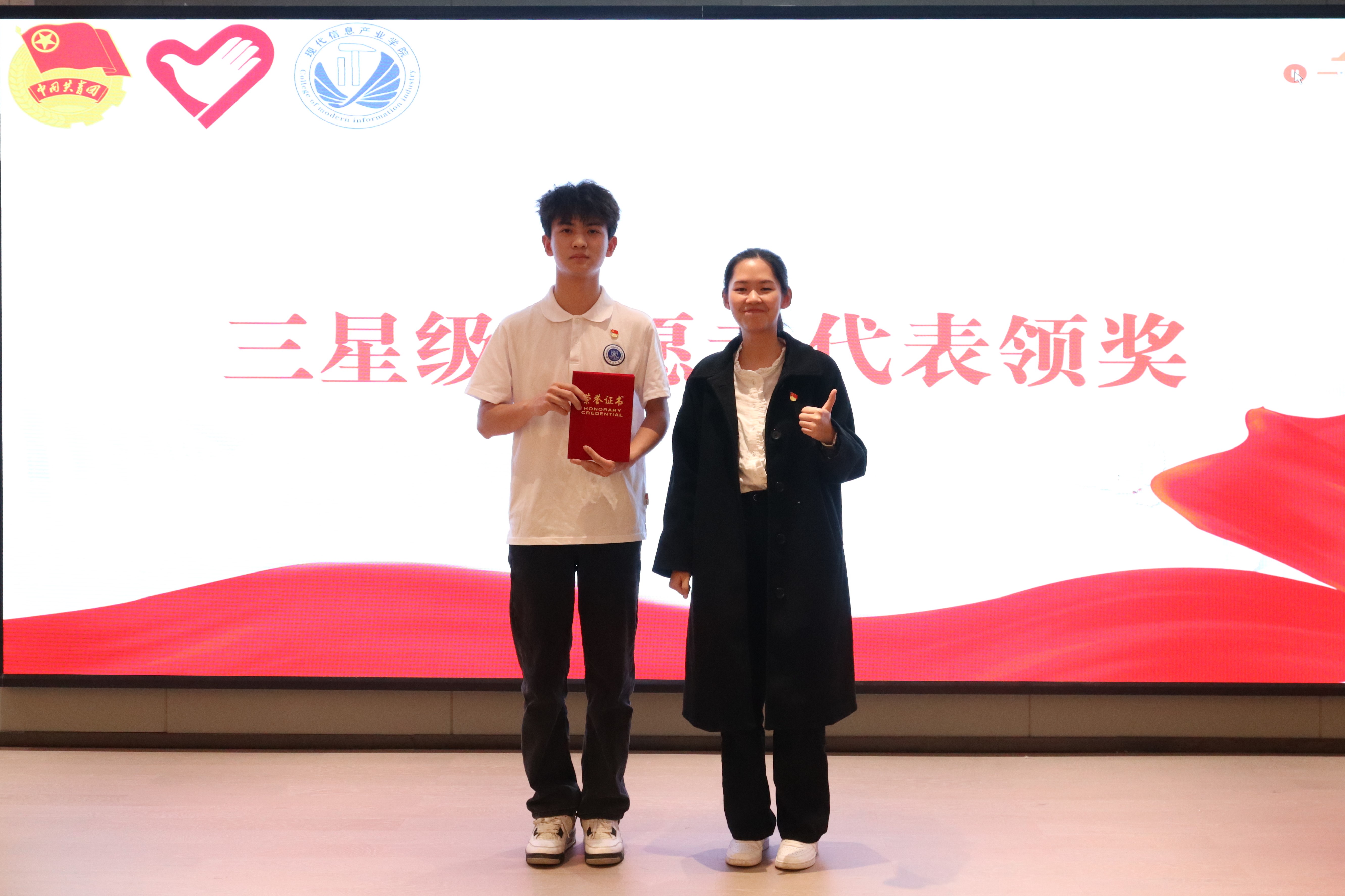在星级志愿者分享结束后,星级志愿者颁奖仪式顺利举行。公司2023度共评选出4名三星志愿者,14名二星志愿者,71名一星志愿者,司徒洛琳、范志航和林海燕为星级志愿者颁发证书,鼓励不断弘扬雷锋精神,以实际行动传播志愿服务精神,传递社会正能量。