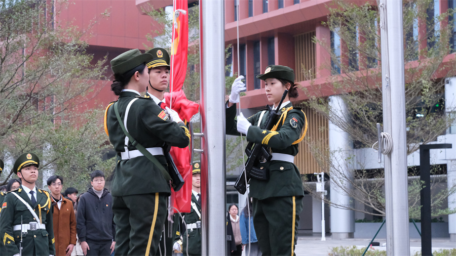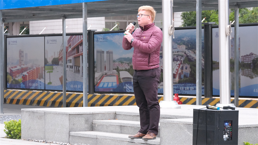 升旗仪式完毕后,关树基作国旗下的讲话。关树基对在场全体师生提出三点希望:一是坚定理想信念,永葆爱国热情,勇于担当时代使命,展现出青春的热情与活力;二是发扬艰苦奋斗、敢于斗争的精神,敢于和分裂国家和危害国家安全的敌对势力作斗争;三是增强诚信考试意识,严肃学风考纪,遵守考试纪律,以身作则,为身边同学做出表率。