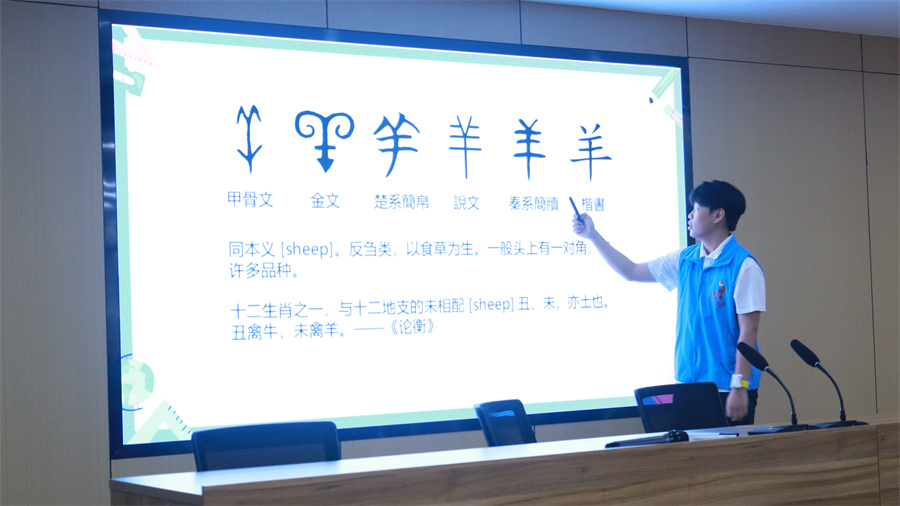 志愿者小老师进行汉字演变的科普