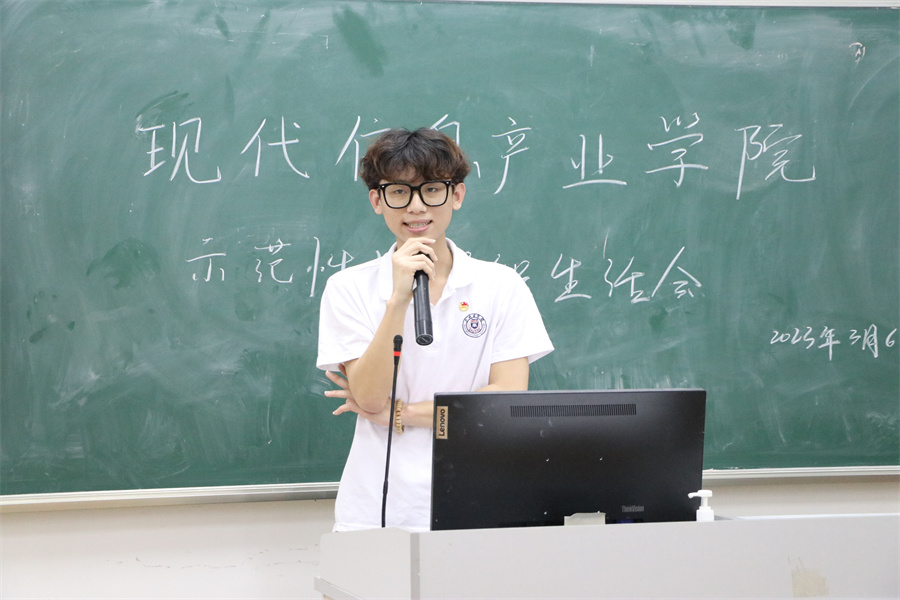 紧接着2021级计算机科学与技术3班团支部代表郭钰升从活动实施情况、活动流程与特色以及活动影响三个方面来进行分享。他认为,找准活动特色是成功举办团组织生活会的重要基础,希望各团支书能够以创新团组织生活会的形式与内容,让同学们能够积极参与进去。